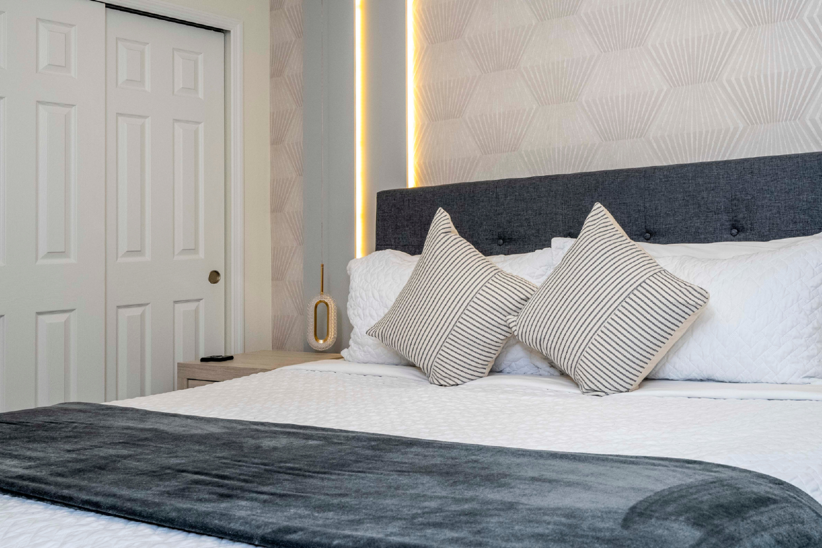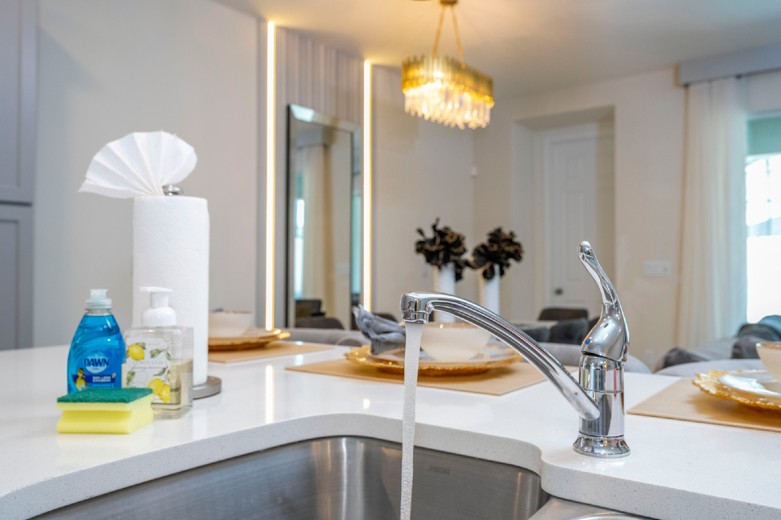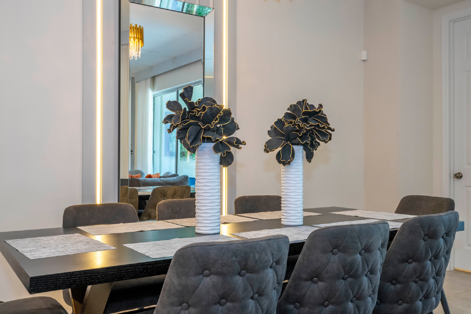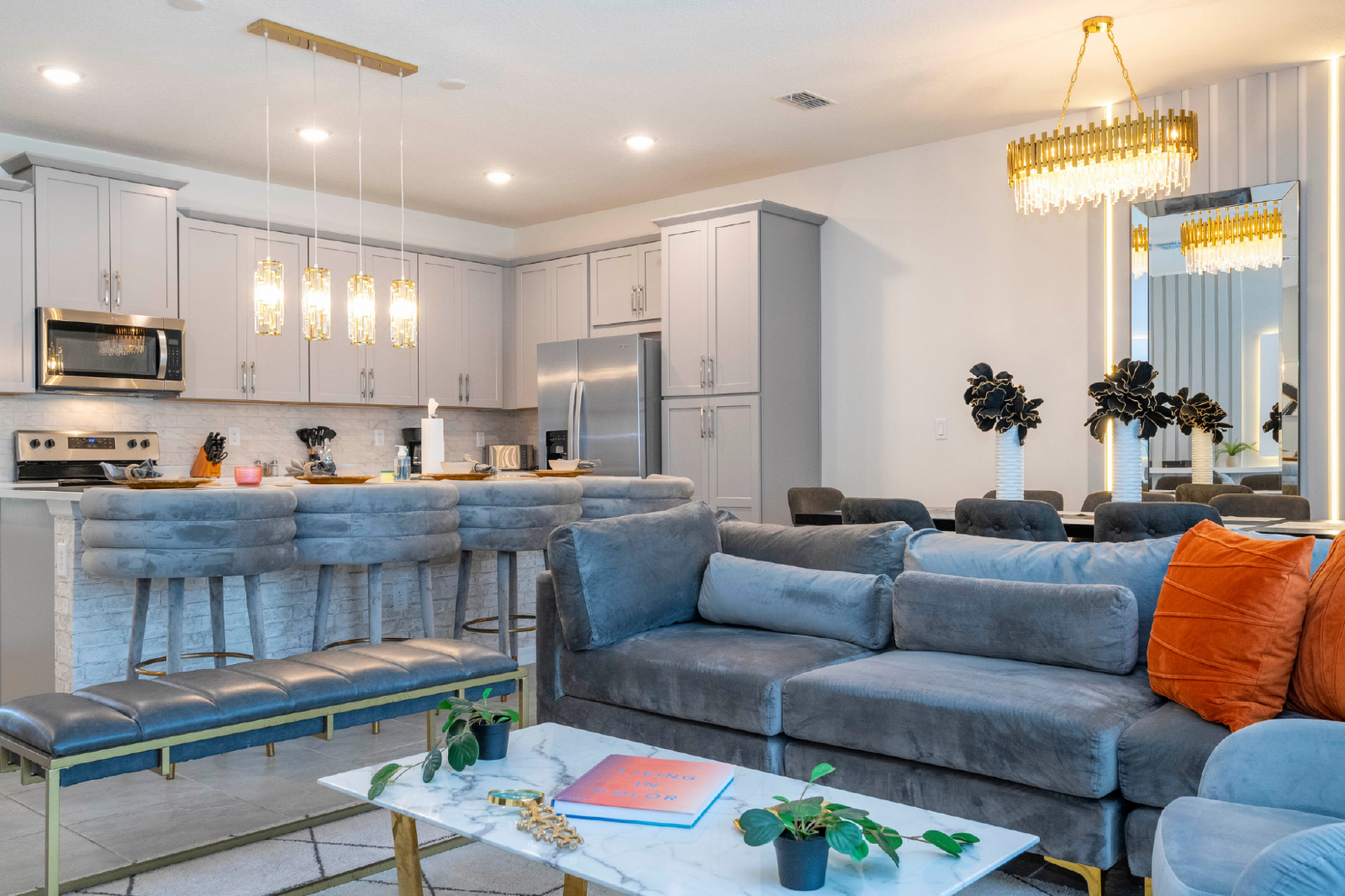 This beautiful luxury town home professionally decorated with Disney themes upstairs bedrooms and it has spacious rooms with full bathrooms! The most beautiful amazing amenities community huge resort style heated pool water rider, pool side cabana, large fitness center, surf simulator, basketball, and football grounds, restaurants, bar, playground close to Disney World, dining restaurants and other attractions.
